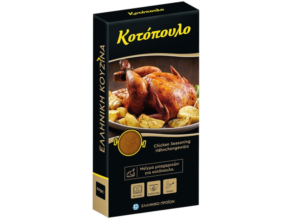 Zloženie: tymián, kari, biele korenie, horčičné semeno, zázvor, údená paprika, cesnakový prášok, kyselina citrónová, cukor, sladká paprika, koriander, muškátový orie, paradajkový prášok, horčica, himalájska soľ.
